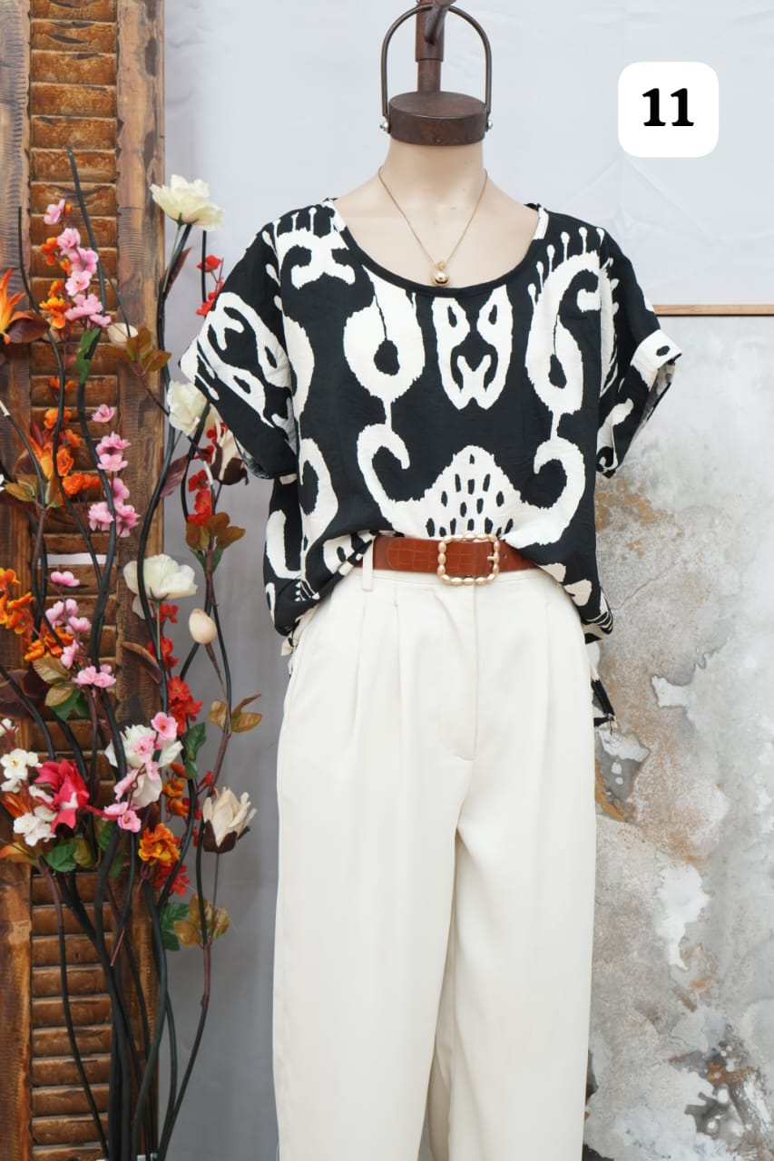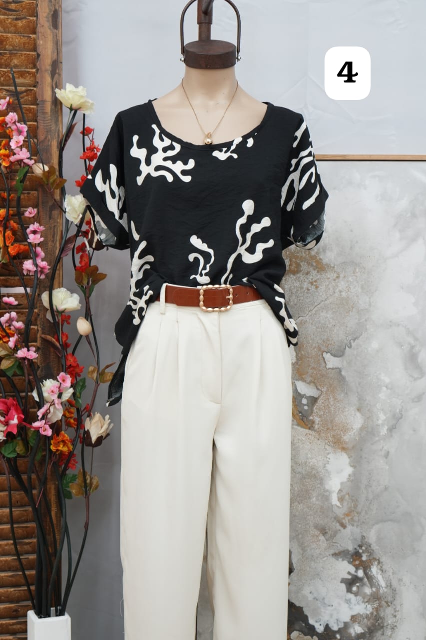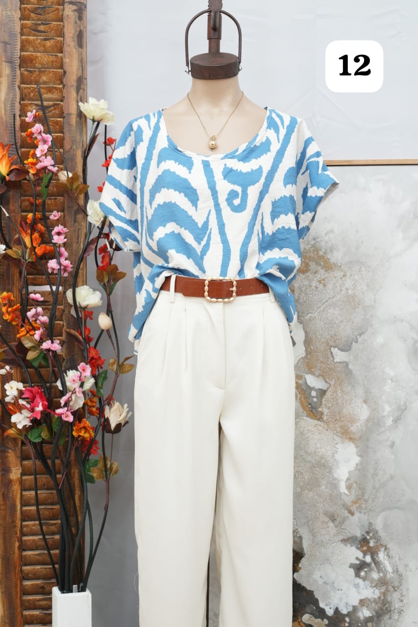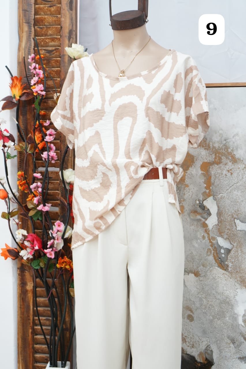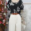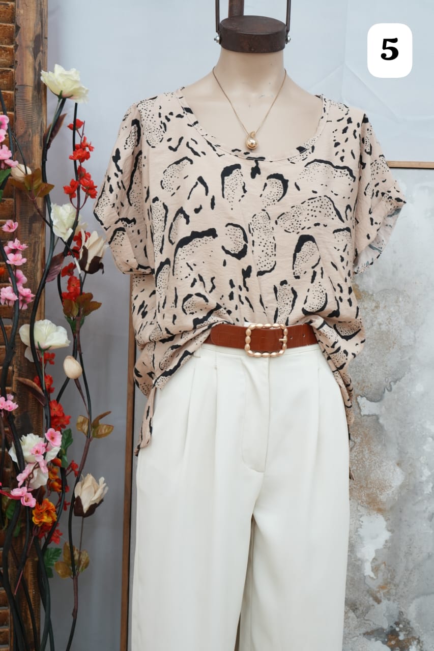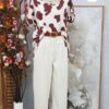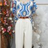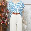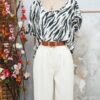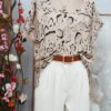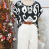 Blusa de emilia estampada con dobladillo en la manga y tajo en los costados