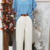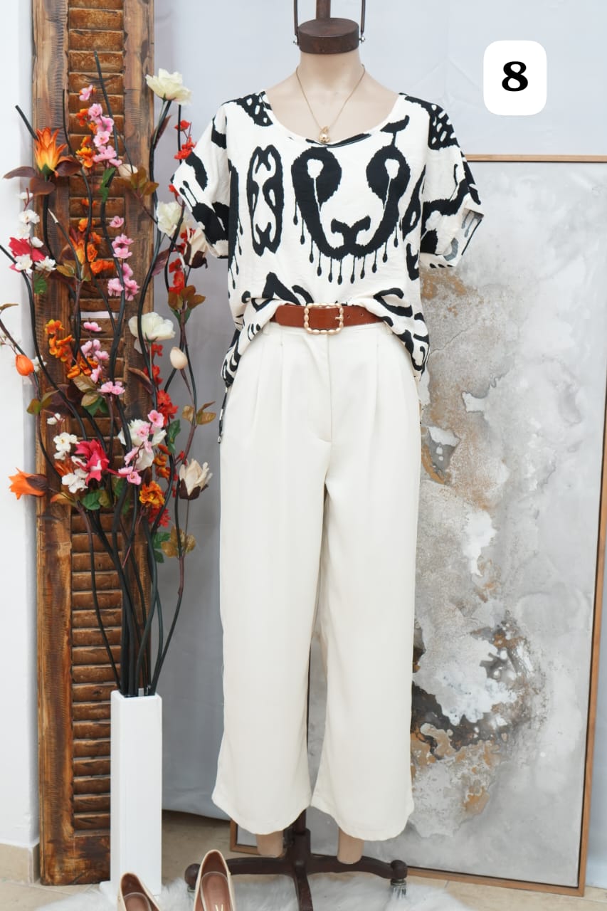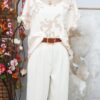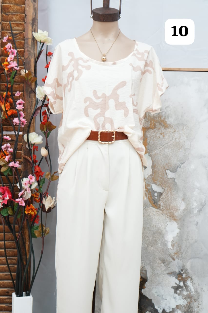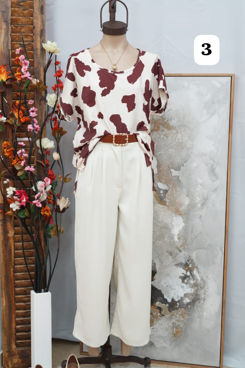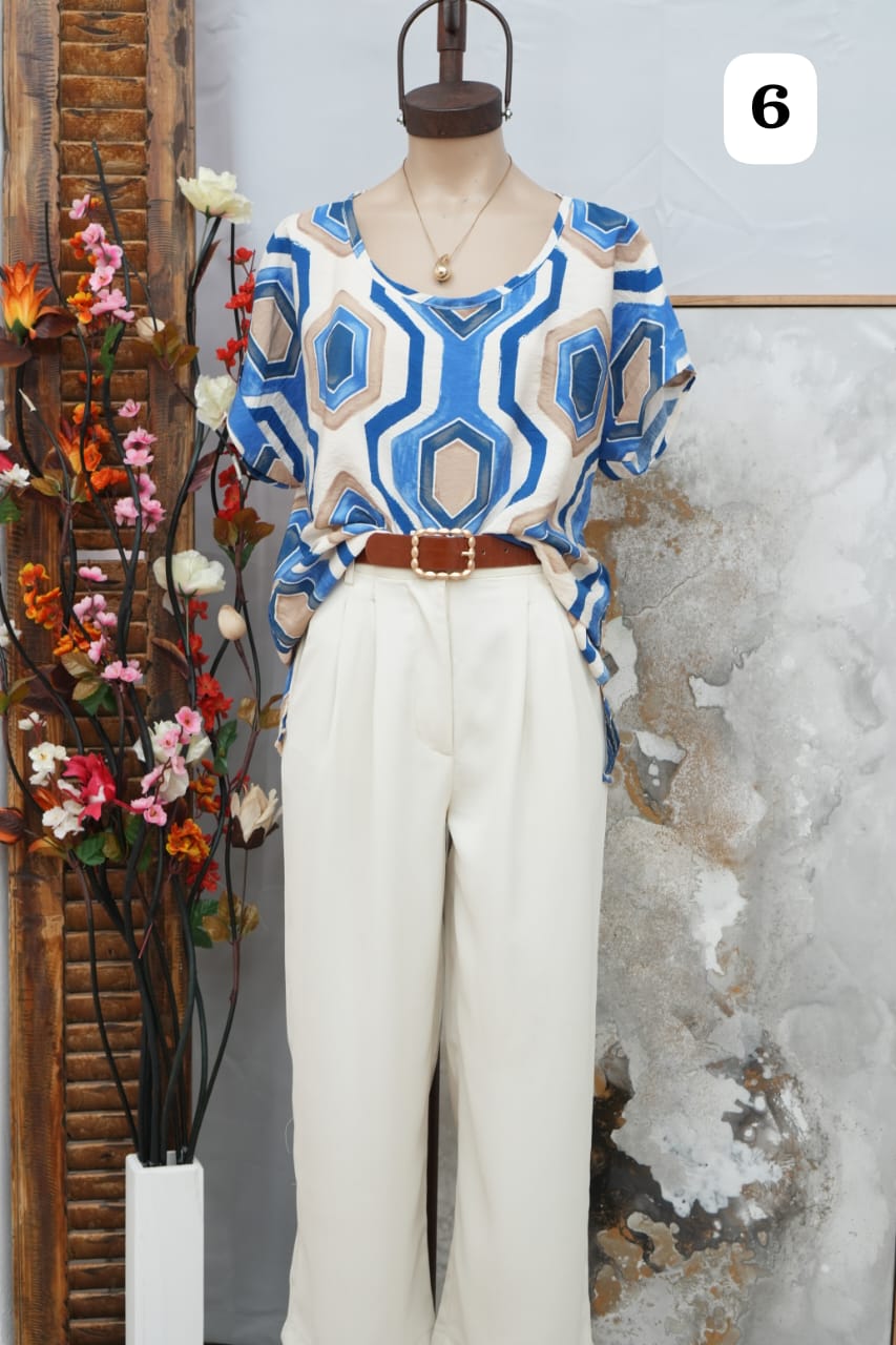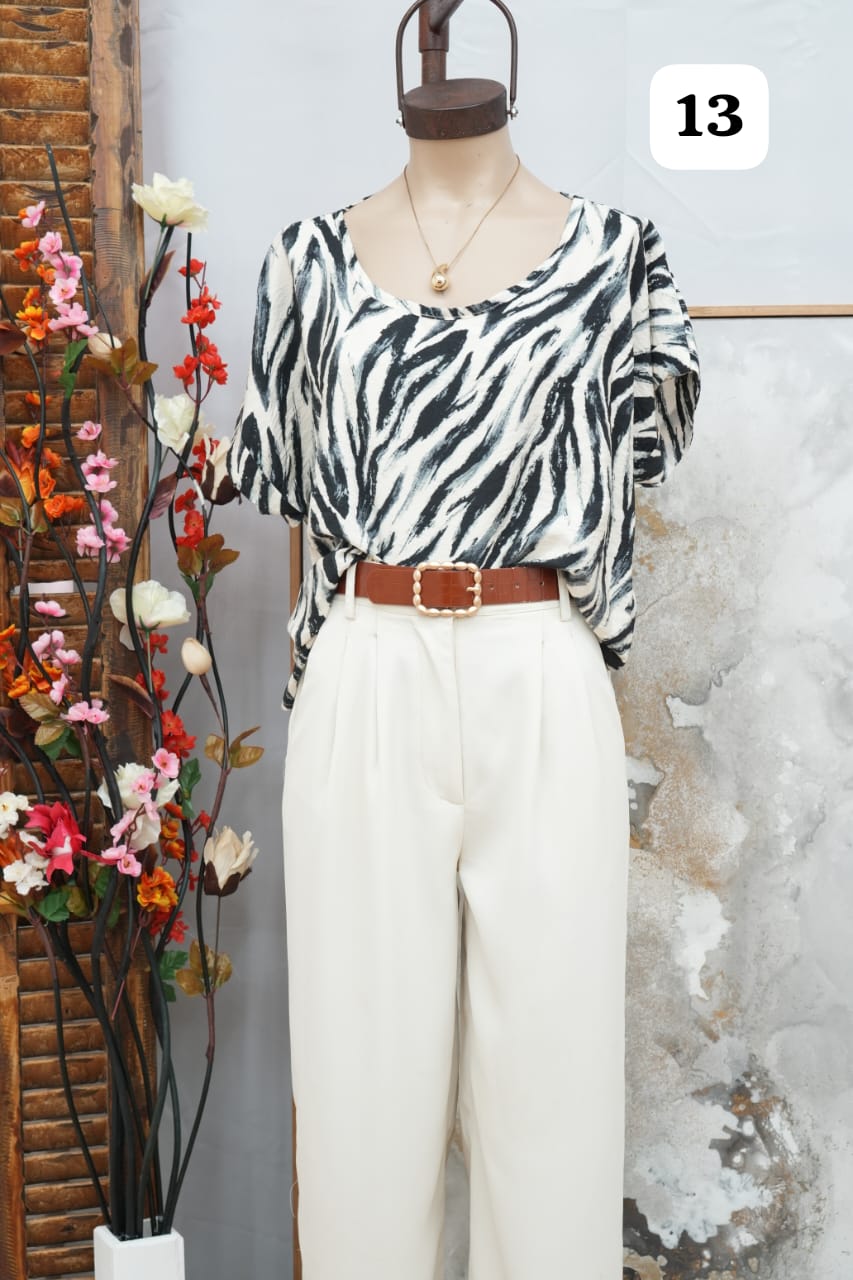 Blusa de emilia estampada con dobladillo en la manga y tajo en los costados