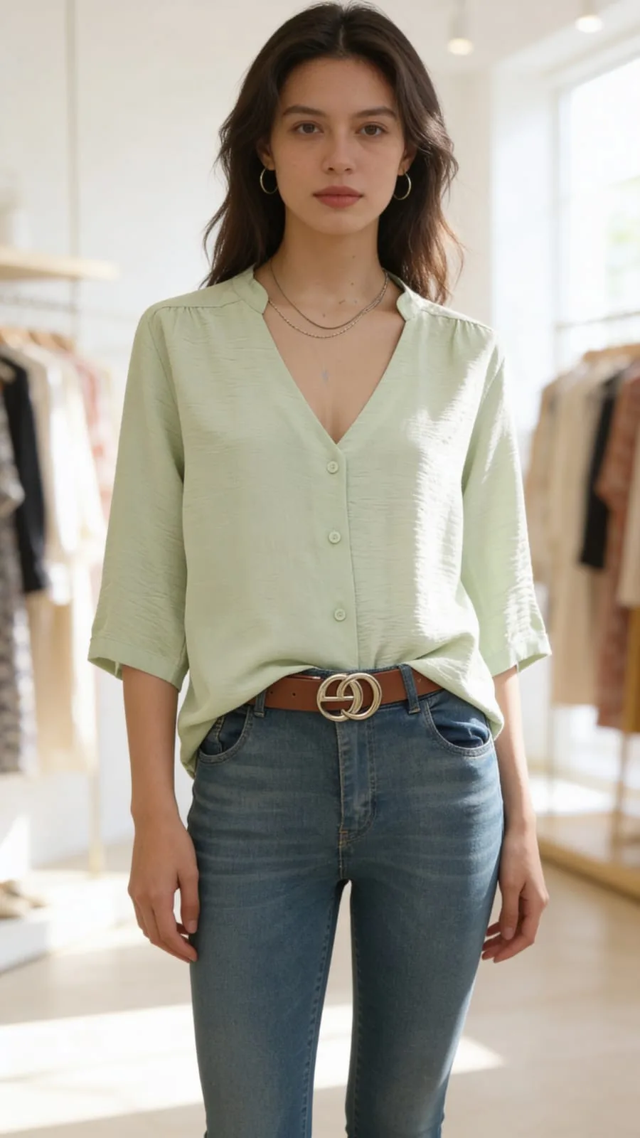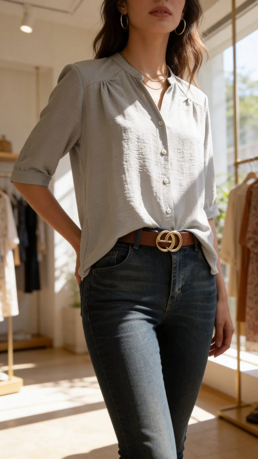 Camisa cey manga 3/4 con puño cuello mao bailarina