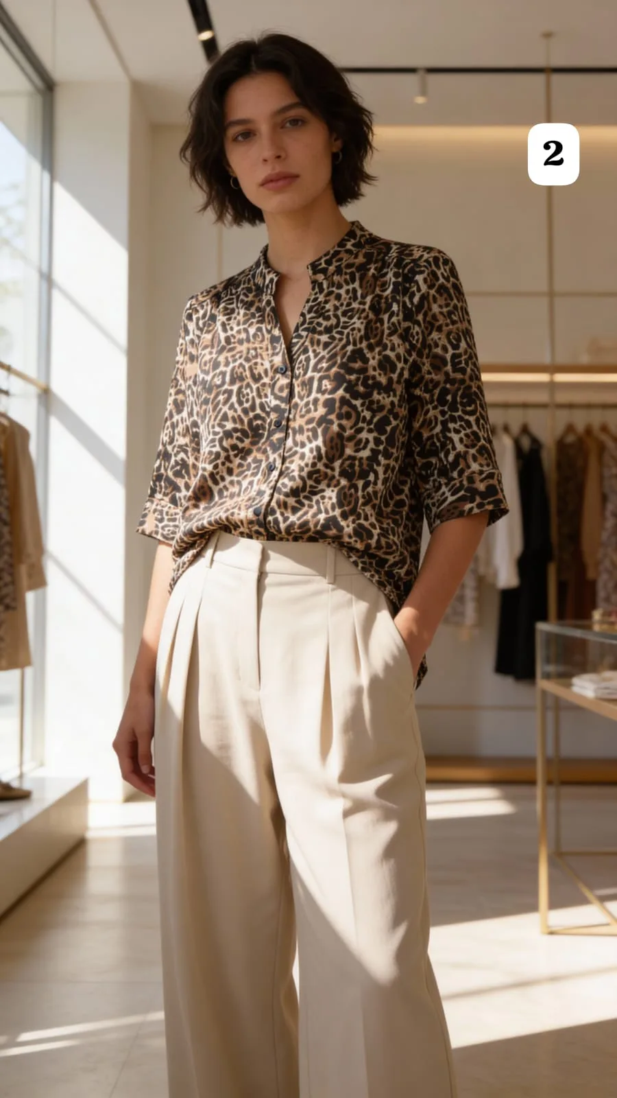 Camisa cuello mao de Satén Premium animal print Faby