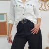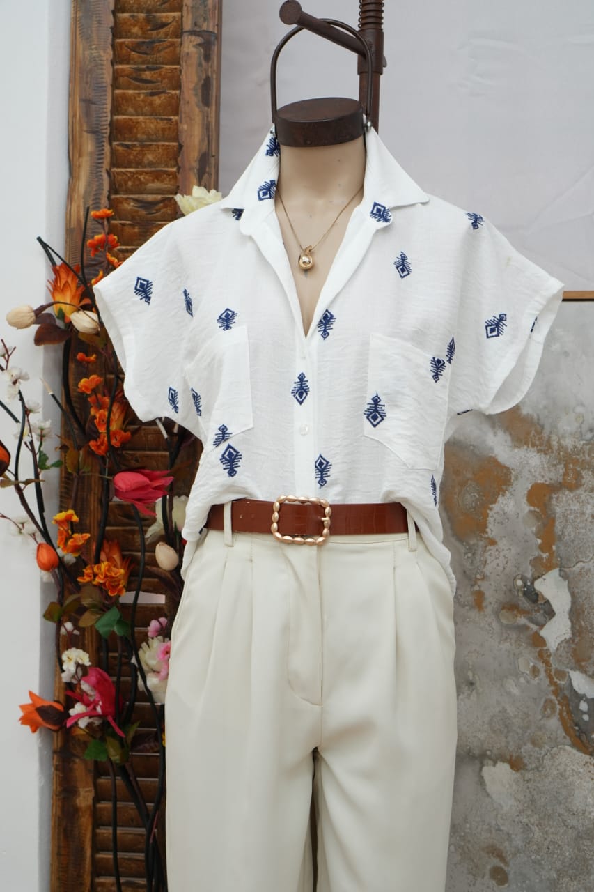 Camisa manga caída con dobladillo paravicinni grey bordado