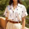 Camisa manga caída con dobladillo paravicinni grey bordado