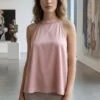 Musculosa cuello Americano con botón atrás de Satén liso Lola