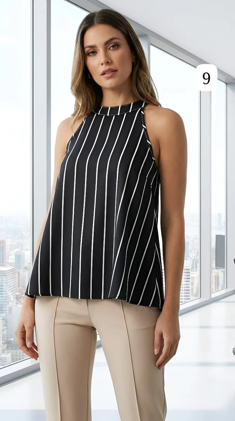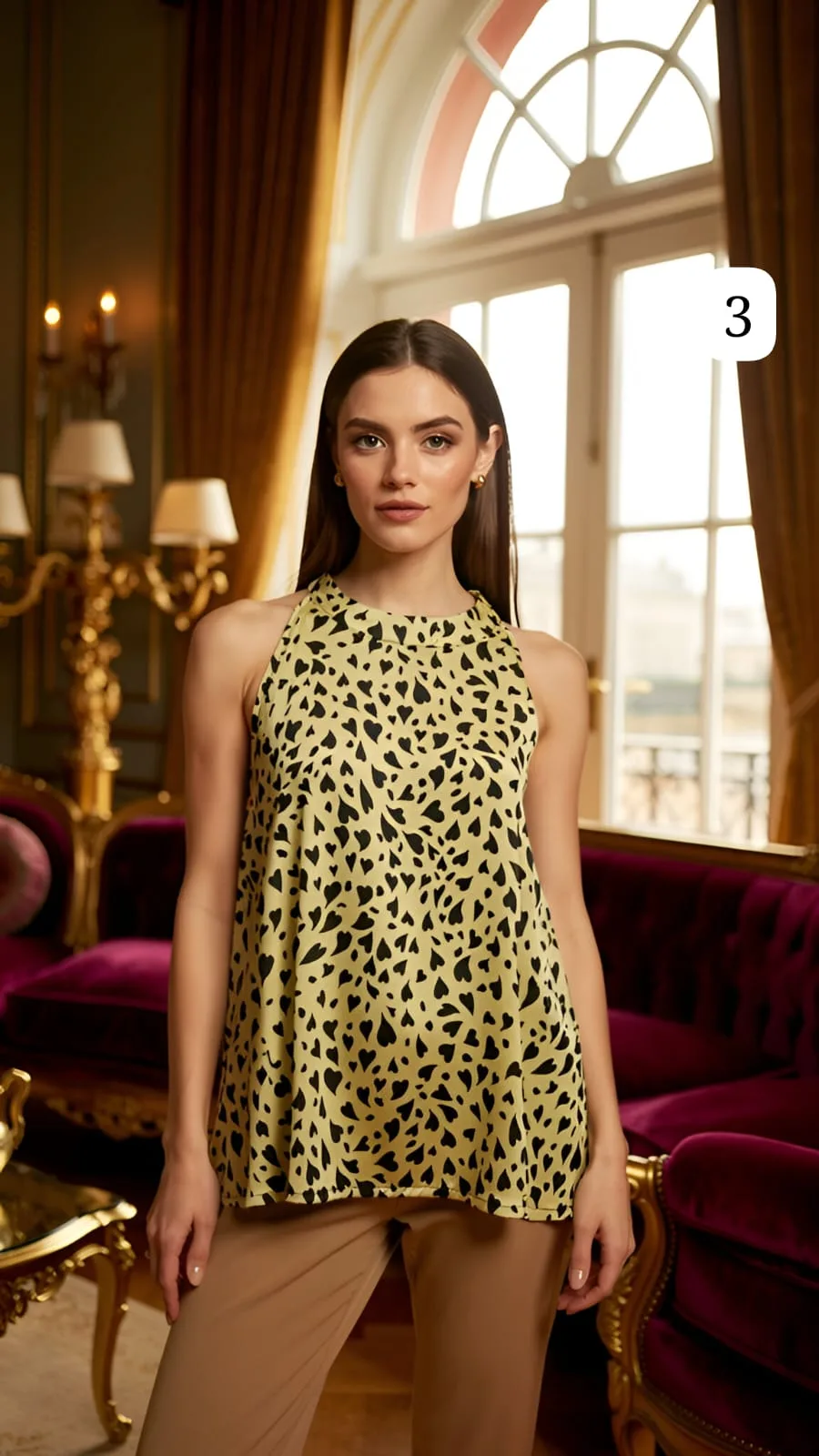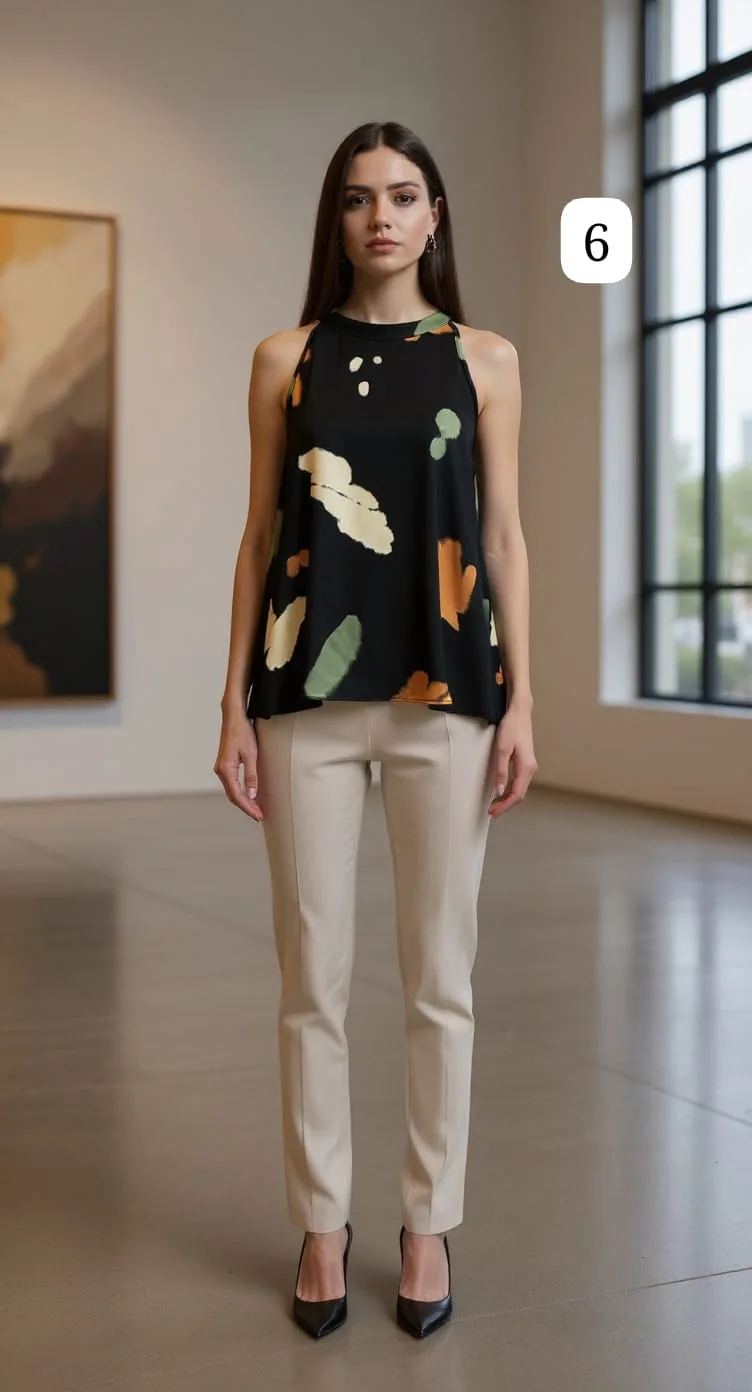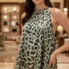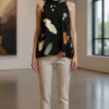 Musculosa de saten estampado cuello Americano everly
