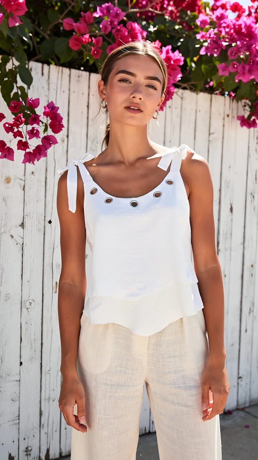 Musculosa emilia con lazo y arandelas felicia